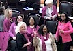 Ohio Democrat women wear Planned Parenthood pink to Heartbeat Bill hearing. L to R: Representatives Allison Russo (Columbus); Jessica Miranda (Forest Park); Lisa Sobecki (Toledo);Tavia Galonski (Akron); Juanita Brent (Cleveland); Mary Lightbody (Westerville); and Emilia Strong Sykes (Akron).